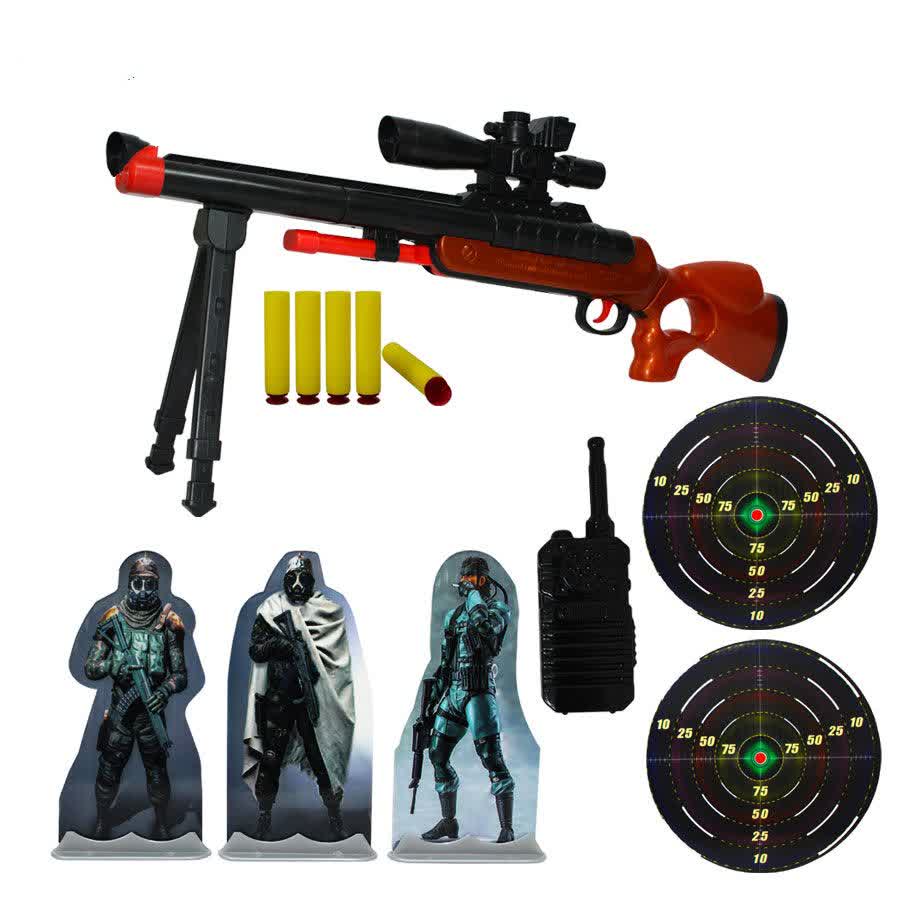 اندازه حماسی (۸۰ سانتیمتر): با طول قابل توجه خود، این تفنگ ظاهری قدرتمند و واقعگرایانه به بازیکن میدهد و هیجان نبرد را دوچندان میکند.دقت هدفگیری با دوربین تعبیه شده: مجهز به دوربین (هدفگیر) که به فرزند شما کمک میکند تا اهداف دوردست را با دقت بالایی نشانه بگیرد. این ویژگی به تقویت مهارت تمرکز و هماهنگی چشم و دست کمک شایانی میکند.پایه قابل تنظیم (Bipod): پایه تفنگ به راحتی در زیر لوله قرار میگیرد و امکان ثابت نگه داشتن اسلحه در حالت نشسته یا نیمخیز را فراهم میآورد. این قابلیت برای حفظ تعادل و شلیکهای دقیق در موقعیتهای استراتژیک ضروری است.ایمنی بالا: تیرهای فومی نرم تضمین میکنند که تمام هیجان بازی در ایمنی کامل انجام شود.این تفنگ برای ساعتها سرگرمی پرتحرک، تقویت تفکر تاکتیکی و تبدیل شدن به قهرمان بازیهای خانوادگی ایدهآل است.